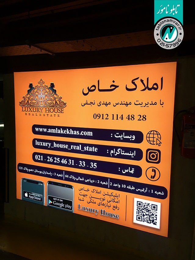 تابلو چلنیوم و تابلو لایت باکس در مغازه مشاور املاک